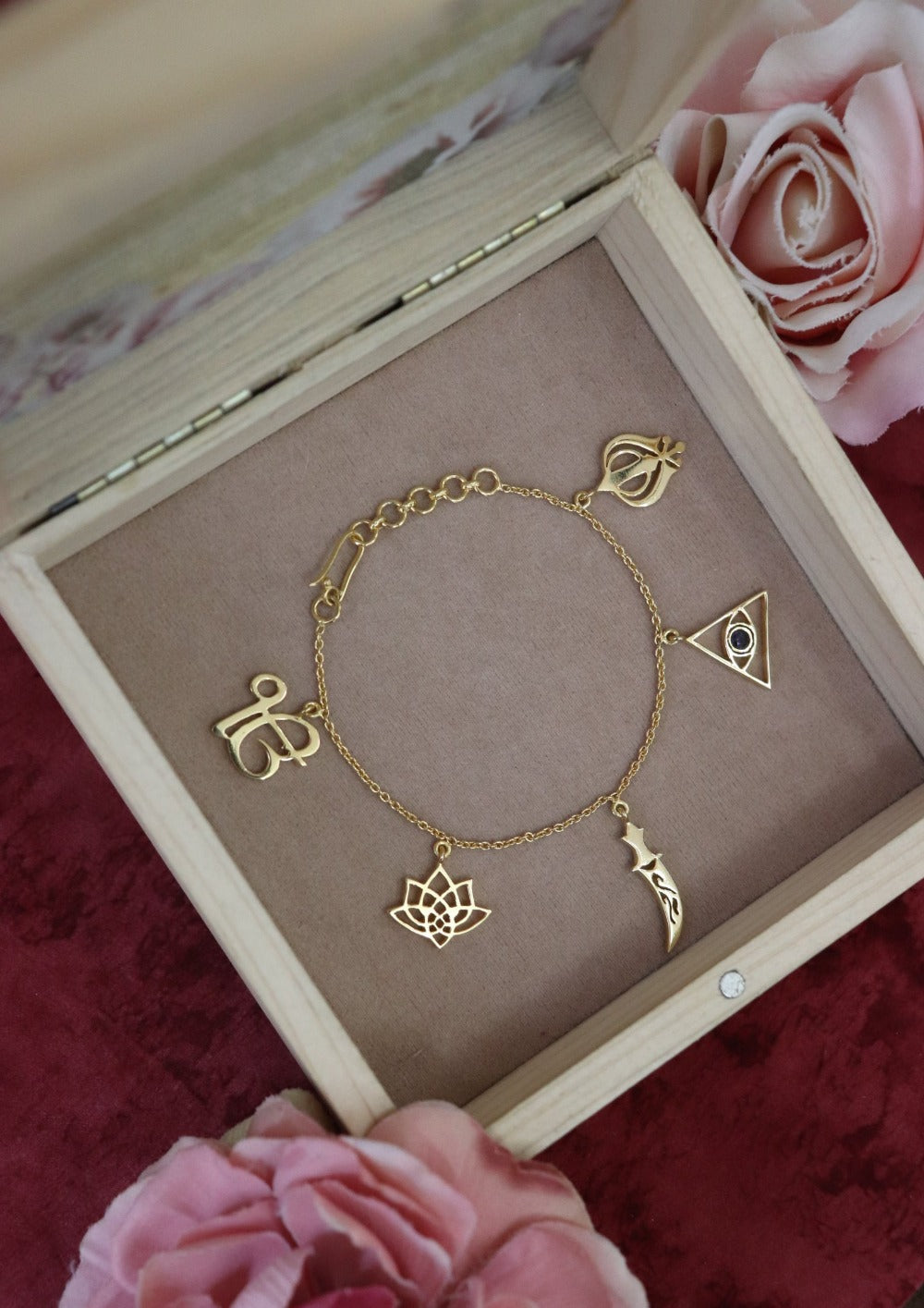 A charm bracelet with delicate motifs to remind you of the one source...