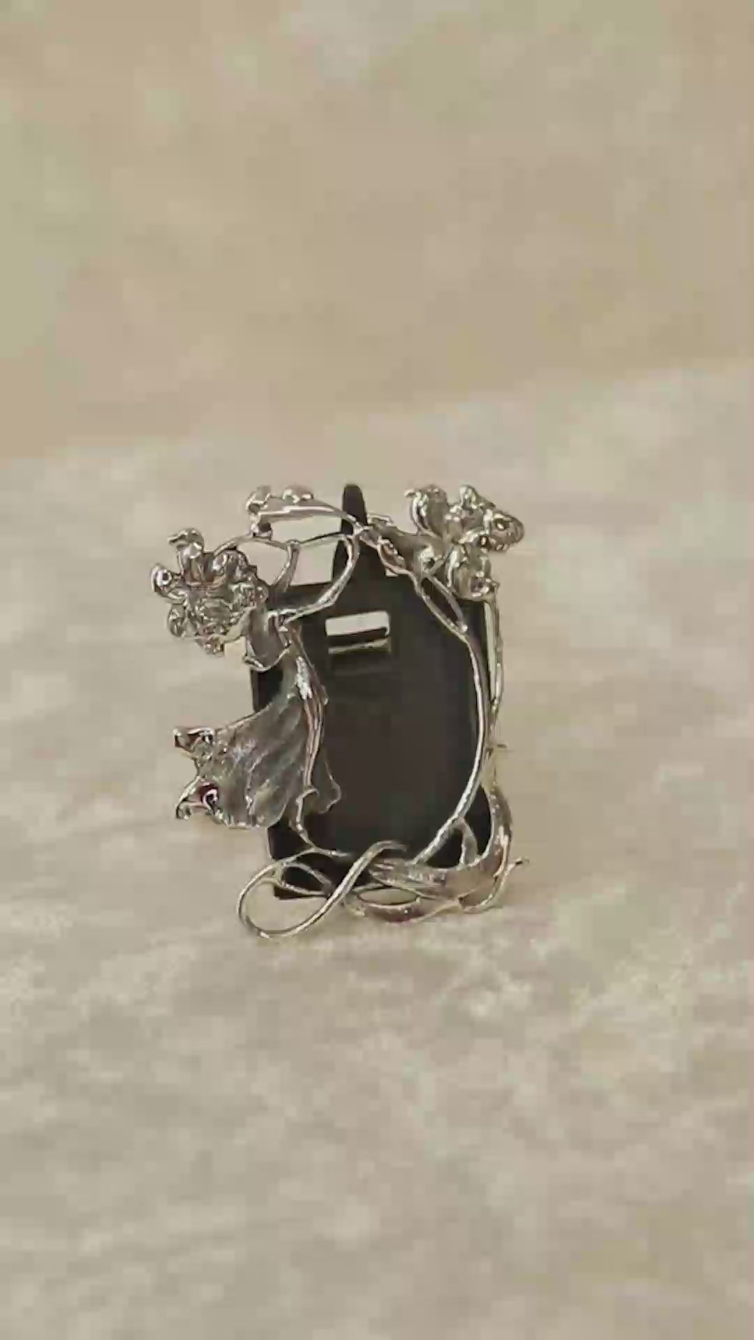 Miniature picture frame in vintage Art Nouveau style featuring a girl playing with flowers.