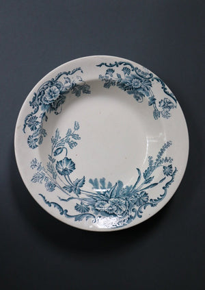 Beautiful vintage transferware bowl plate or pasta bowl with a floral pattern of bouquets and acanthus leaves. This is the Cuba pattern by Pountney & Co Ltd Bristol England. We also have a dinner plate to match. The underside is marked with the Pountney & Co. Bristol Pottery logo. Made in England in the early 1900s.
