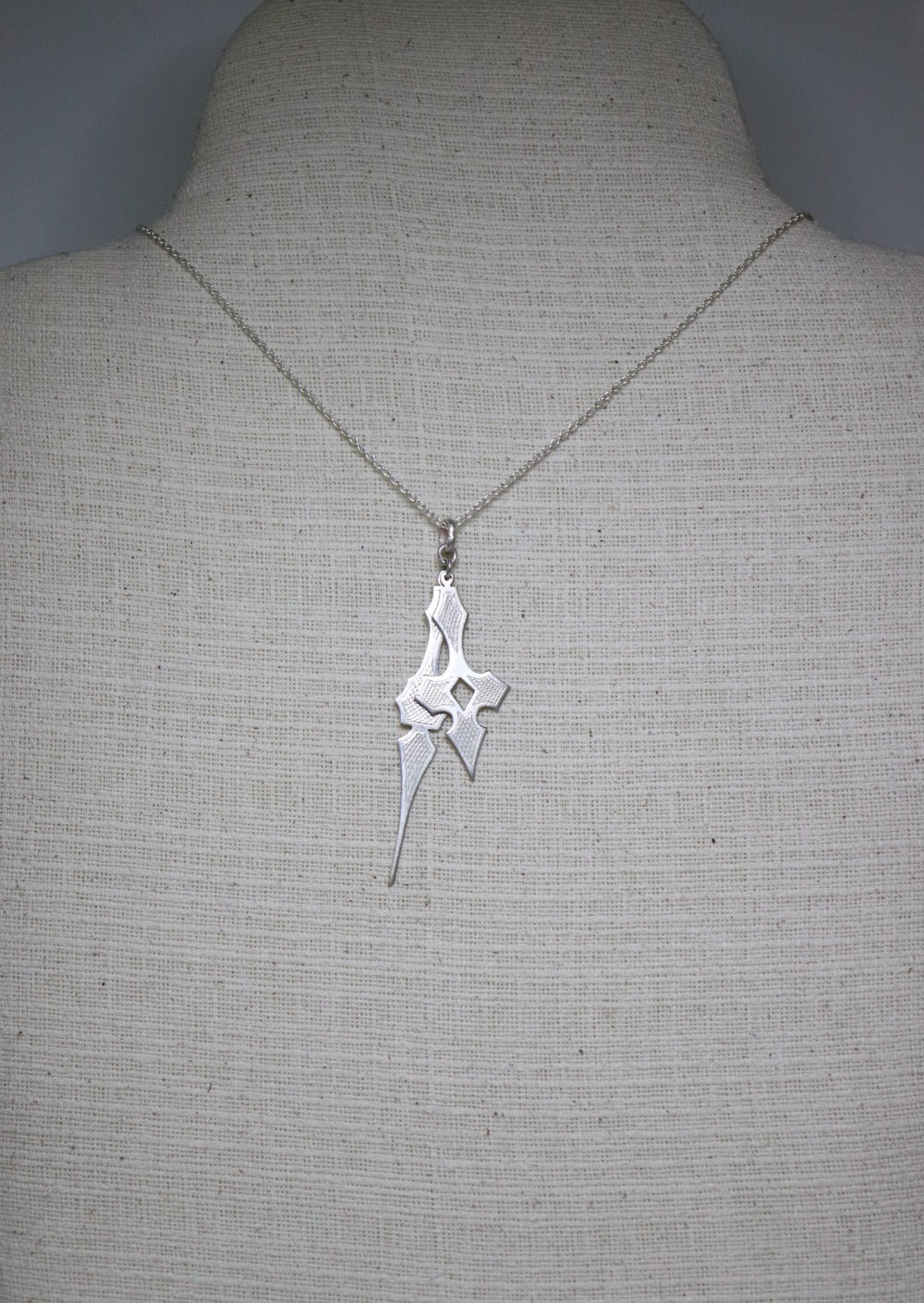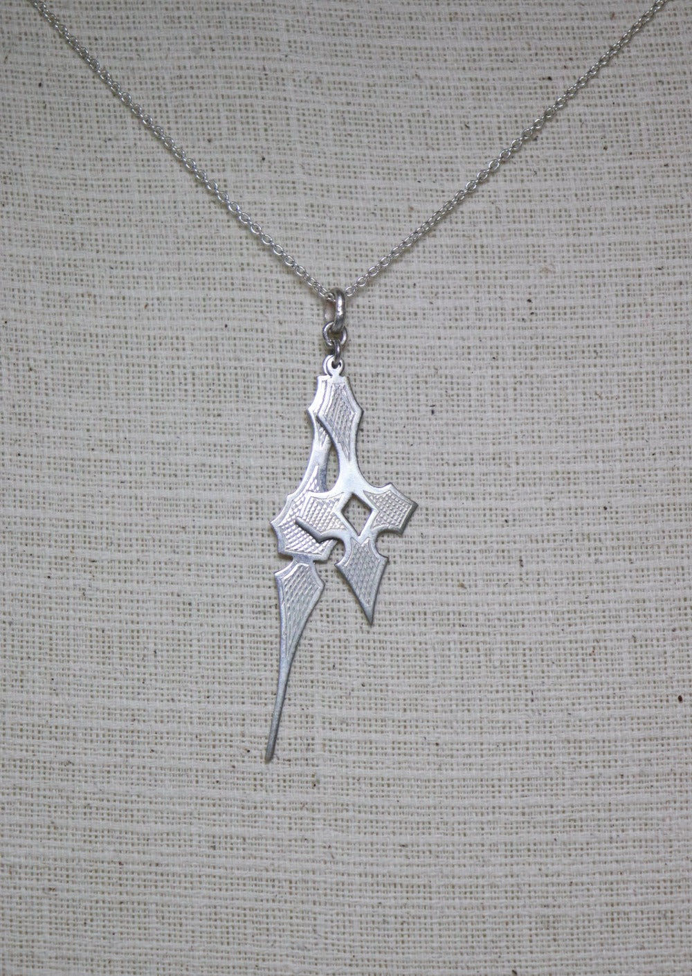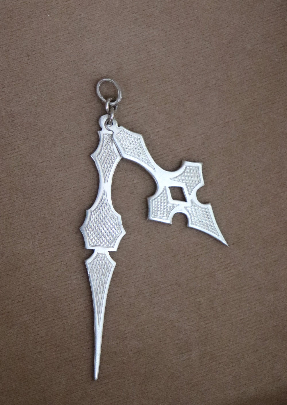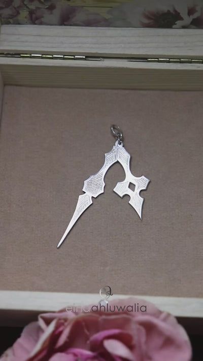 Engraved pendant in sterling silver that imitates clock hands.